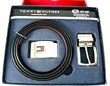 New Tommy Hilfiger Reversible Black / Brown Belt & Buckle Set w/Valet Tray Box. This Universal size belt measures 42 inch and is designed to be cut down to any size (Fits sizes: 30-42). The set also includes two different stainless steel belt buckles. The double sided leather belt strap width is 30mm. All our Tommy Belts come in a custom gift men's valet gift box that can be used to place various items such as car keys in. Belt Details Condition: New Color: Black and Brown Size: 30mm width and 42 inches long (trim to size: Fits 30-42 Inch waists) Packaging: Men's Valet Gift Box- Designer Tommy Hilfiger Reversible Belt