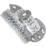 This belt is dripping in rhinestones & bling, a must have for every diva. This belt is weaved on each side edge & has a row of large rhinestones going right down the center of the belt. The rhinestones are surrounded by silver-toned studs.Small measures approximately 39 inches long, end to end. Medium 42.5 inches long, end to end. Large 45 inches long, end to end. X-Large 48.5 inches long, end to end.