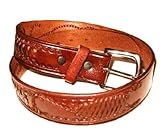 Real high quality cowhide leather belt is tooled and braided in Mexico. Western style.- Beige Color/Light Brown Cowhide Leather Belt